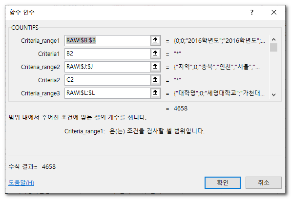 이 문서는 COUNTIFS 함수에 대한 것이다.